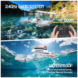 Avião de Controle Remoto 3 em 1 com 2 Baterias e Planador de Avião RTF de 24 GHz DEERC RC Branco