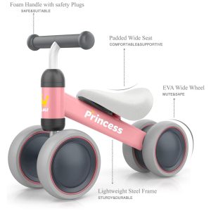 Bicicleta sem Pedal Infantil com 4 Rodas para Crianças de 1 a 4 Anos GAMFEINY BK 234 Rosa