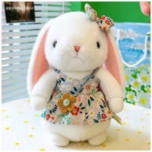Coelho de Pelúcia de 38 cm com Vestido Vintage Coleção Páscoa Oits Cute Rosa