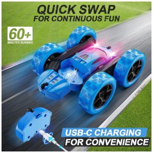 Mini Carro RC Escala 1:64 RTR com Controle Remoto de 24 GHz e Iluminação RGB LDARC Azul