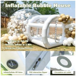 Casa Bolha Inflável para Crianças e Adultos Casa de Balão de Bolha de PVC Transparente com Túnel Inflador de Ar Bomba de Ar – Gaonala