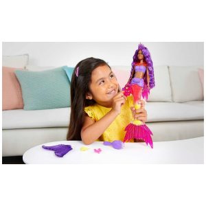 Boneca Barbie Sereia Brooklyn com pet Phoenix e Acessórios Rosa
