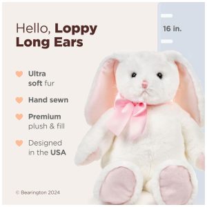Coelho de Pelúcia de 35 cm Coleção Páscoa Bearington Loppy Branco e Rosa