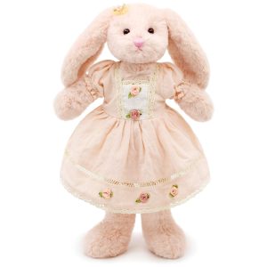 Coelho de Pelúcia de 38 cm com Vestido Vintage Coleção Páscoa Oits Cute Rosa