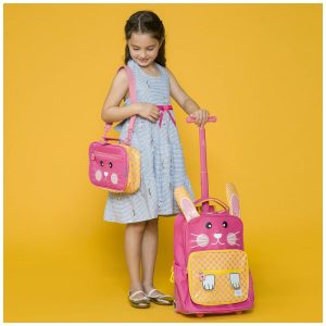 Mochila Bevalsa 3 em 1 rosa e bege com lancheira e estojo para notebook até 156″ e porta USB