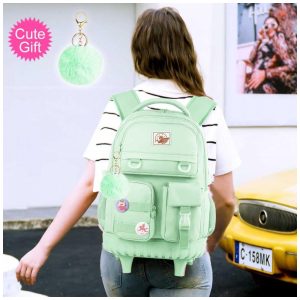 Mochila escolar CCJPX com rodinhas verde conjunto 3 peças com lancheira e estojo resistente à água