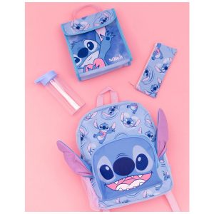 Mochila infantil oficial Disney Lilo & Stitch 4 peças com lancheira estojo e garrafa