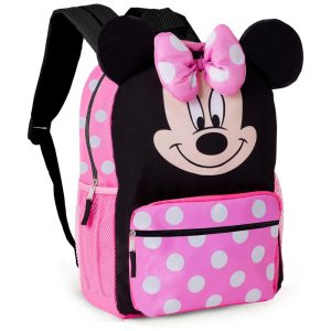 Mochila Minnie Mouse Oficial Disney 36cm para Crianças com Orelhas 3D e Laço Almofadado