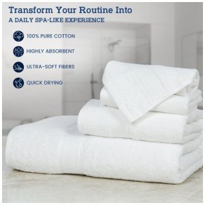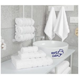 Jogo de Toalhas Ultra Macias e Absorventes com 96 Peças em Material 100% Algodão Fiado GOLD TEXTILES Branco