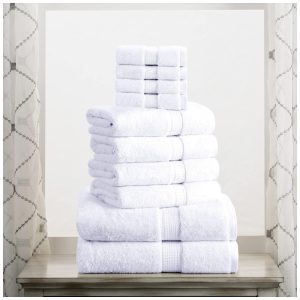 Jogo de Toalhas de Luxo para Hotel Altamente Absorventes com 8 Peças e 100% Algodão White Classic Branca