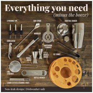 Mixology Bartender Kit Bn Profissional 23 Peças em Aço Inoxidável com Suporte e Livro de Receitas