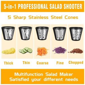 FOHERE Ralador e Fatiador Elétrico Profissional com 3 Lâminas Aço Inoxidável 110V 150W Preto