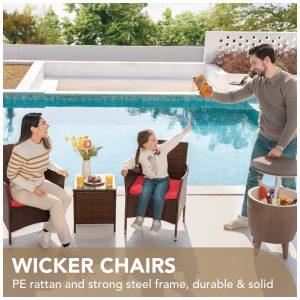 Conjunto de Móveis de Exterior de Vime FDW com 3 Cadeiras de Pátio em Rattan e Mesa de Café para Quintal Jardim Varanda Piscina e Sacada – Preto Pr