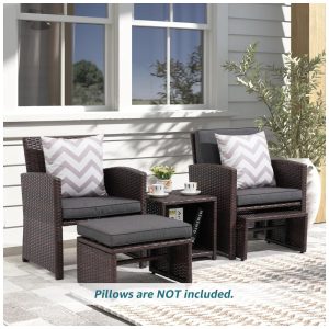 Conjunto de Conversação para Pátio OC Orange-Casual – 5 Peças Móveis de Varanda com Almofadas Cadeira de Vime Marrom com Otomano Mesa de Armazename