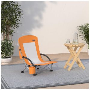 Cadeira de Praia Portátil para Adultos com Costas Altas e Porta-Copos Nice C Laranja