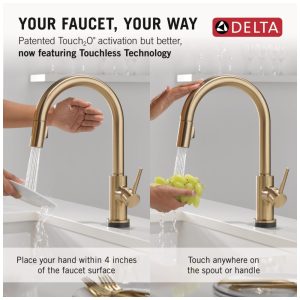 Torneira Cozinha com Tecnologia Touch2O e Pulverizador Pull Down Delta 9159T-CZ-DST Champagne Bronze