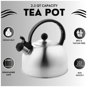 Chaleira de Chá 2. em Aço Inoxidável com Apito BELANKO BE 2.5L BK Preto
