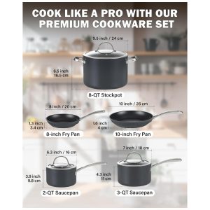 Conjunto de Panelas Antiaderentes de Alumínio Anodizado 8 Peças COOKS STANDARD 02709 Preto