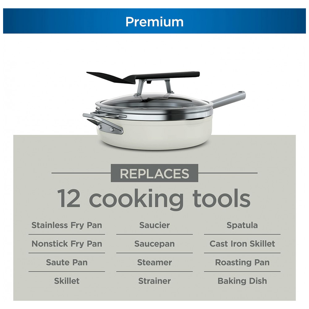 Frigideira Antiaderente 14 em 1 com Espátula e Tampa de Vidro, Ninja CW102WH, Branca Baunilha