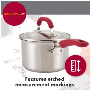 Jogo de Panelas em Aço Inoxidável 10 peças com Alças Azul Clara Rachael Ray Prata