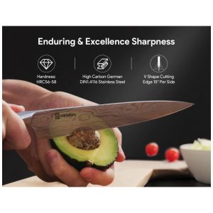 Conjunto de Faca e Garfo Lâmina de Aço Inoxidável Damasco HexClad