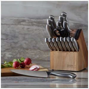 Conjunto de Facas em Aço Inoxidável com Bloco de Bancada 18 Peças Chicago Cutlery Prata