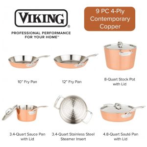 Jogo de Panelas e Frigideiras Antiaderentes em Aço Inoxidável 9 Peças Viking Culinary Cobre