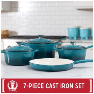 Jogo de Panelas em Ferro Fundido Esmaltado com Revestimento Antiaderente 7 Peças Basque Azul