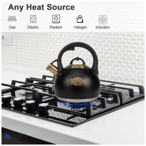 Chaleira de Chá 3 Litros em Aço Inoxidável com Apito e Alça Ergonómica LUXGRACE Preta