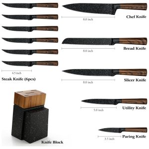 Conjunto de Facas em Aço Inoxidável com Bloco de Madeira 12 Peças Vvwgkpk Marrom