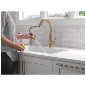 Torneira Cozinha com Pulverizador Pull Down de Ancoragem Magnética Delta Monrovia 9191-CZ-PR-DST Champagne Bronze