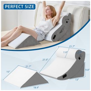 Kit 4 Almofadas Ortopédicas em Cunha Almofada de Espuma para Dormir Alívio de Dor nas Costas Pós-Cirúrgico HABUTWAY Branco e Cinza