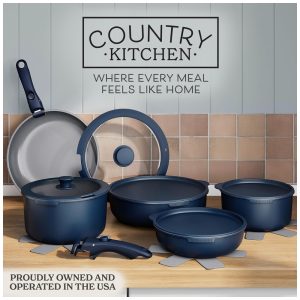 Jogo de Panelas e Frigideiras Material em Alumínio com 16 Peças e Cabo Removível Country Kitchen Azul Escuro