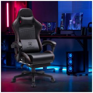 Cadeira Gamer Reclinável e Giratória com Alto Falantes Bluetooth e Apoio para Pés GTPLAYER Vermelho e Preto