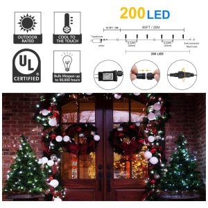 Pisca Pisca 200 LED 20 Metros a Prova dÁgua com 8 Modos para Decoração de Halloween e Natal Branco