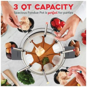 Panela de Fondue Elétrica Capacidade 2.8L 8 Garfos Aço Inoxidável 110v DASH DFM250GBGY04 Prateado
