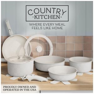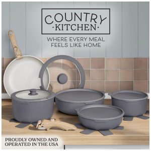 Conjunto de Panelas Antiaderente Cerâmico Azul NuWave Healthy Duralon Resistente a Arranhões.