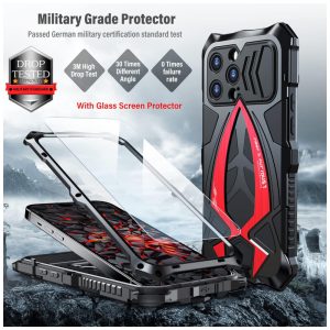 Capa para Iphone 14 Pro Max de Alta Resistencia Nível Militar KumWum Preta e Vermelha