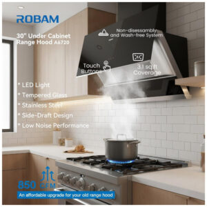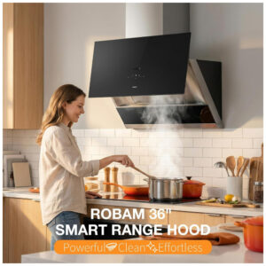 Coifa de embutir ou parede 91cm Robam inox motor BLDC 1200 CFM 4 velocidades filtro lavável LED 110V