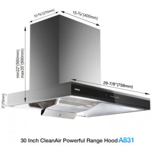 Coifa de embutir 76cm Robam inox e vidro CleanAir motor brushless 1100 CFM 9 velocidades 110V