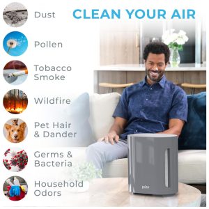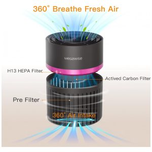Purificador de Ar com Filtro HEPA H13 e Camada de Carvão Ativado MEGAWISE Cinza e Rosa
