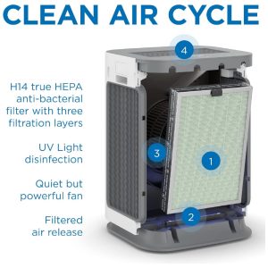 Purificador de ar inteligente com filtragem HEPA verdadeira e tecnologia UV C para salas extragrandes Homedics