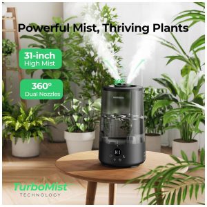 Umidade e Luz LED para Plantas Saudáveis – Umidificador Homvana 3.6L para Quarto e Ambientes Grandes – Preto