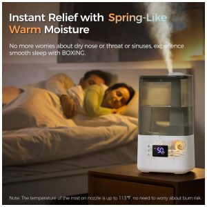 Umidificador BOXING 6 Litros com Vapor Quente e Frio Controle Remoto Modo Automático – Ideal para Quarto de Bebê e Plantas Enchimento Fácil Modo Noturno