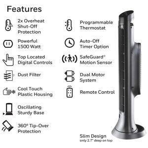 Aquecedor Elétrico de Cerâmica com Sensor de Movimento e 2 Modos 1500W 110V Honeywell Preto