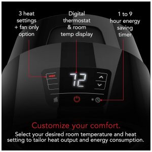 Aquecedor Elétrico Radiador Digital Portátil com Controle Remoto 1500W 110V Amz Basics Preto