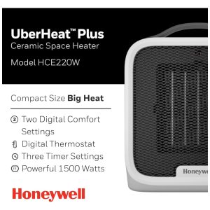 Aquecedor Elétrico de Cerâmica para Espaços Pequenos 220W 110V Honeywell Heat Branco