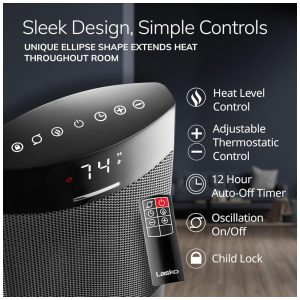 Aquecedor Elétrico Portátil Silencioso com 3 Modos e Controle Remoto 110V 1500W Dreo Preto e Dourado