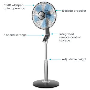 Ventilador de Piso com Controle Remoto 5 Velocidades e Silencioso 110V 70W Rowenta VU5870 Branco