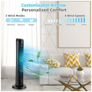 Ventilador de Torre Oscilante Silencioso com 3 Velocidades e 3 Modos 110V 35W COSTWAY Preto